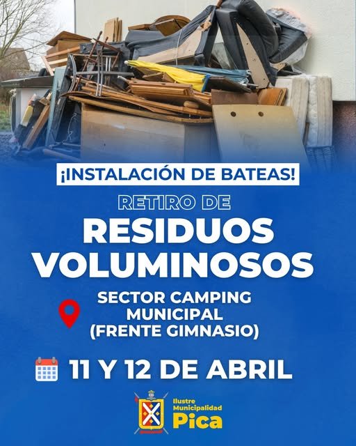 La Municipalidad de Pica informa la instalación de bateas para el retiro de residuos voluminosos.