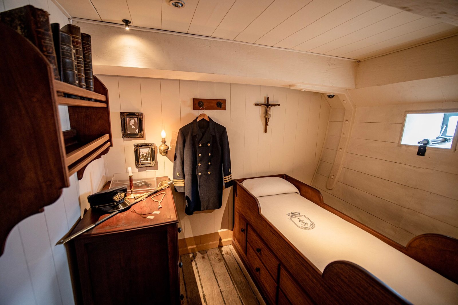 El lugar es una reproducción a escala 1:1 de esta unidad de la Armada, que en mayo de este año celebró un gran hito con la llegada del visitante un millón. Su construcción fue realizada en una articulación con la Corporación de Amigos del Patrimonio Cultural de Chile, de manera de conformar un equipo experto en ingeniería y construcción naval, maniobras y museología. Posteriormente, se integró la Corporación Patrimonio Marítimo de Chile, que asumió la etapa ejecutora y su administración para transformarlo en un museo de sitio.