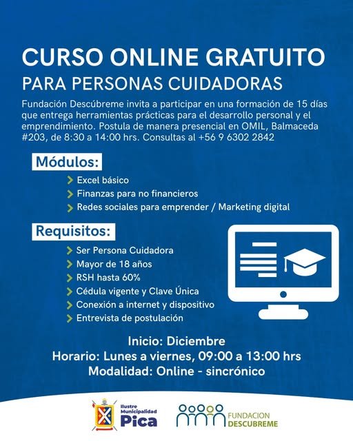 La OMIL y Fundación Descúbreme traen una nueva oportunidad de aprendizaje, creada especialmente para fortalecer el trabajo y el bienestar de las Personas Cuidadoras.