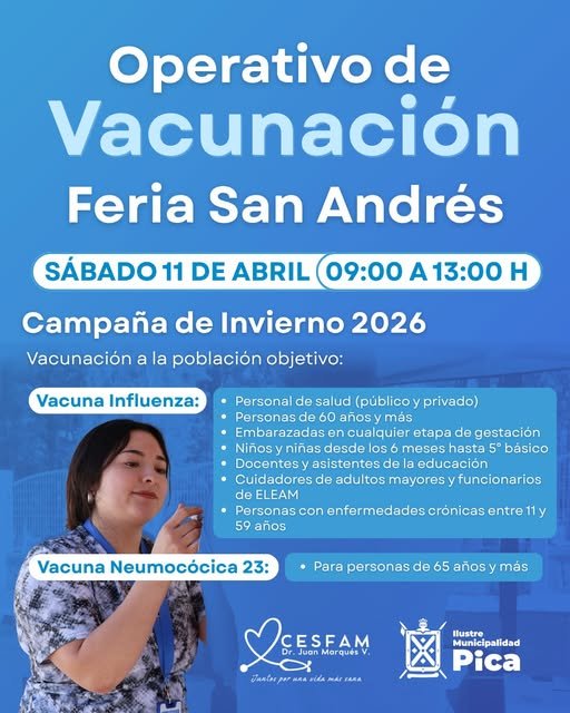 Este sábado 11 de abril se realizará un Operativo de Vacunación en la Feria San Andrés, en el marco de la Campaña de Invierno 2026, orientado a los grupos objetivos definidos para proteger a quienes más lo necesitan.