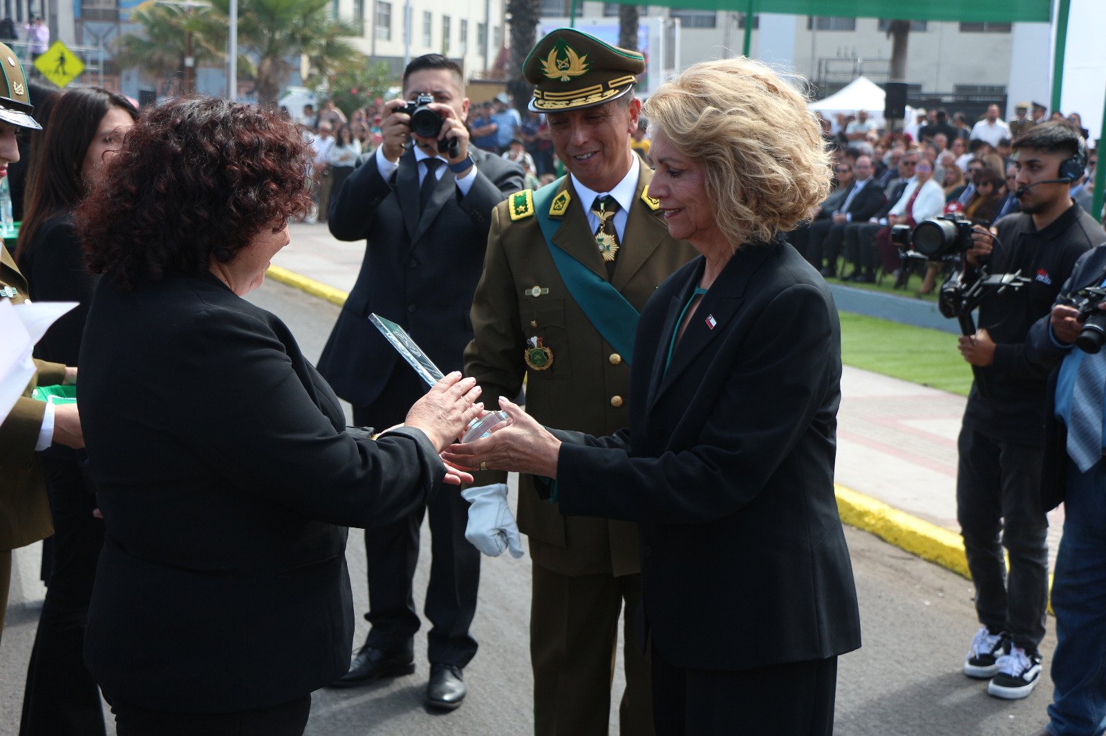 “Como delegada presidencial estoy muy complacida de haber compartido este día, y días previos también, con Carabineros de Chile; muy contenta de haber participado en esta emotiva ceremonia, con participación de Gendarmería, y no me queda más que saludar a todos los carabineros de nuestra región por la enorme labor que cumplen, por el compromiso abnegado que tienen y solamente decir, gracias Carabineros de Chile”, dijo la delegada presidencial regional de Tarapacá, Adriana Tapia Cifuentes.